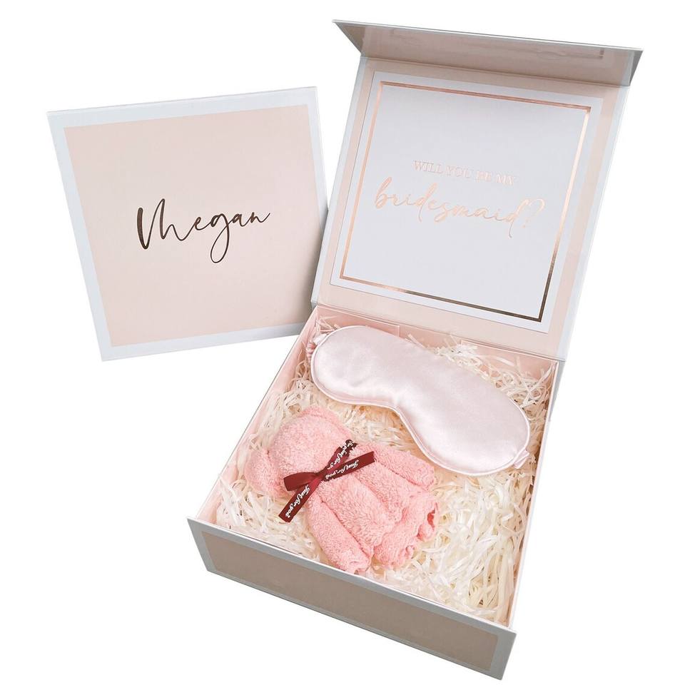 Bomboniera personalizzata scatole di carta di lusso pieghevoli in oro rosa imballaggio proposta damigella d'onore confezione regalo con chiusura magnetica con nastro