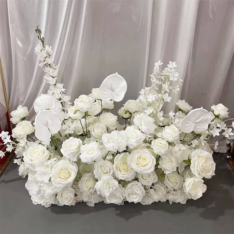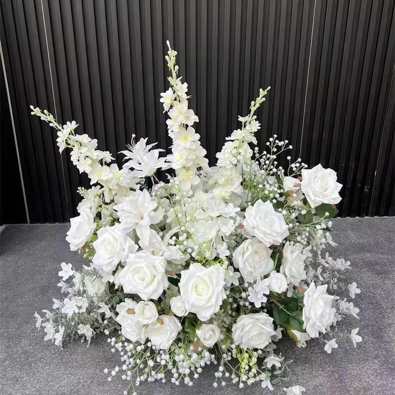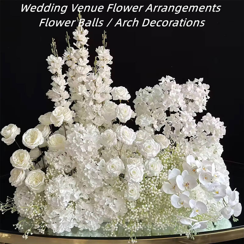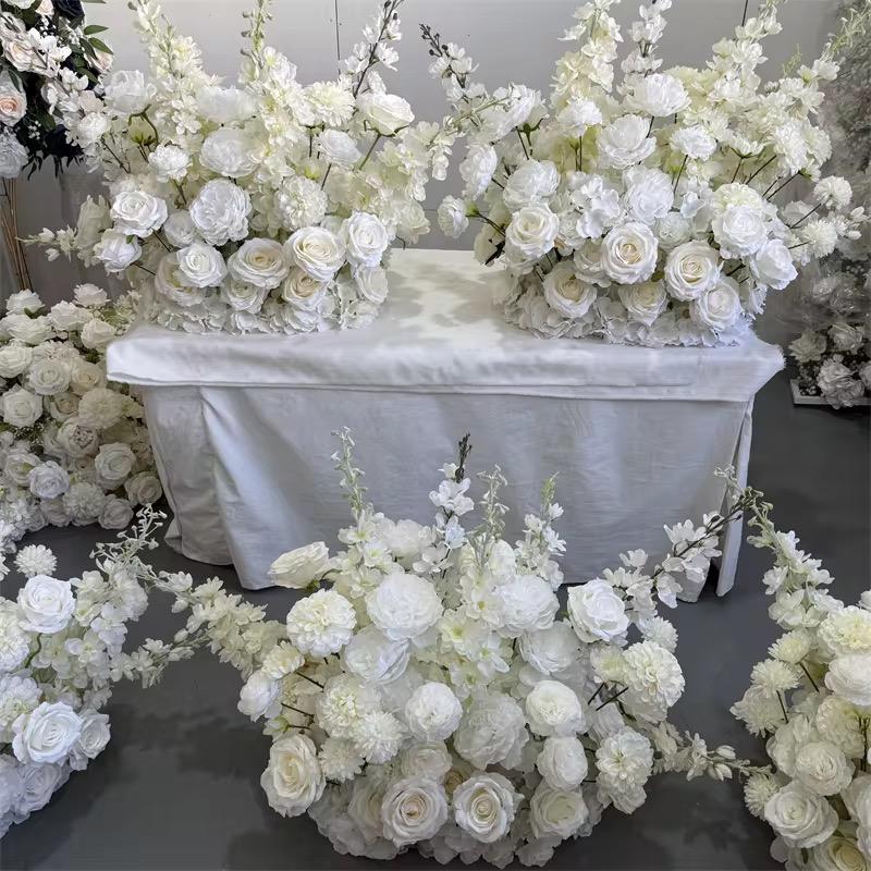 Composizione Floreale Personalizzata per Corridoio Nuziale con Rose Bianche, Orchidee e Fiori Artificiali Eleganti