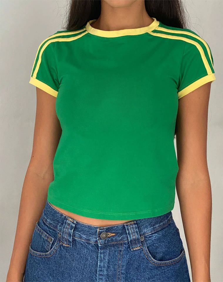 Custom Wholesale 230GSM Crew Neck Blank T Shirts Women Vintage Ringer Tee White Stitching Color Cropped T Shirt Tops for Girls