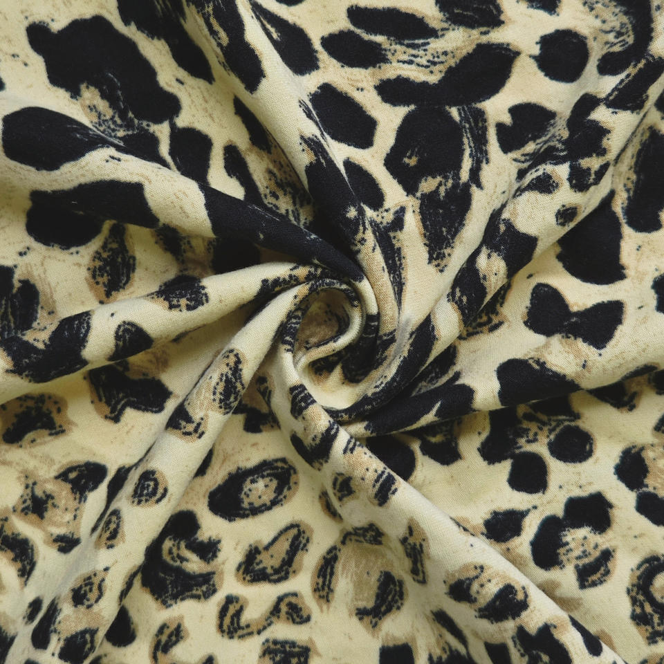 Tessuto Jersey in Microfibra Spazzolata a Doppia Faccia con Stampa Leopardata, 95% Poliestere 5% Spandex, per Pigiami e Abbigliamento da Casa, Personalizzabile e all'Ingrosso