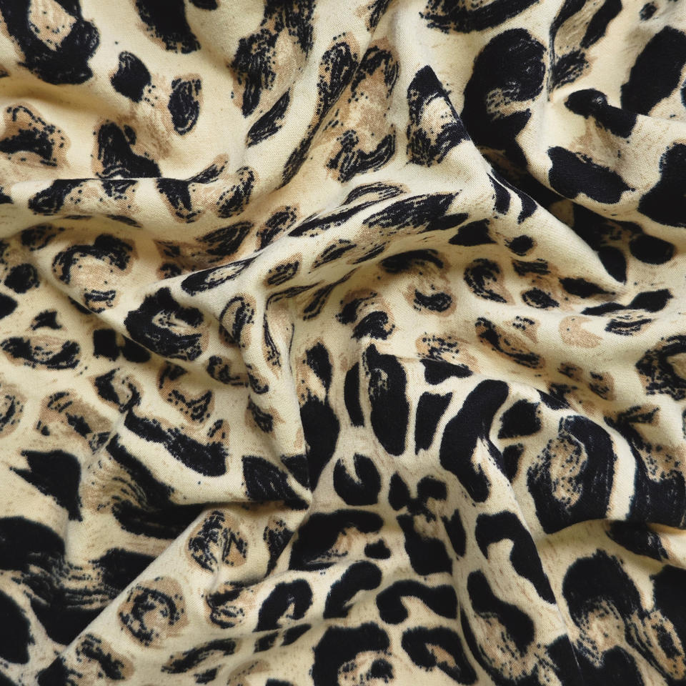 Tessuto in Jersey di Latte con Stampa a Motivo Leopardo Animale