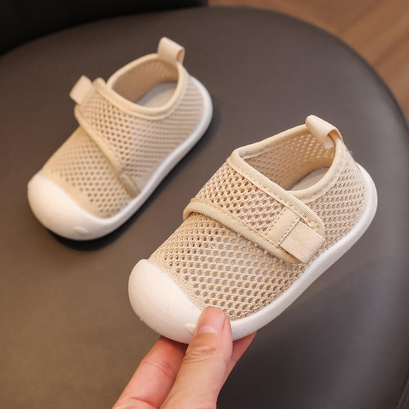 Custom Wholesale Baby Beige Mesh First Walker Shoes Breathable Velcro Soft Sole Non-slip Toddler Walking Shoes for Infant