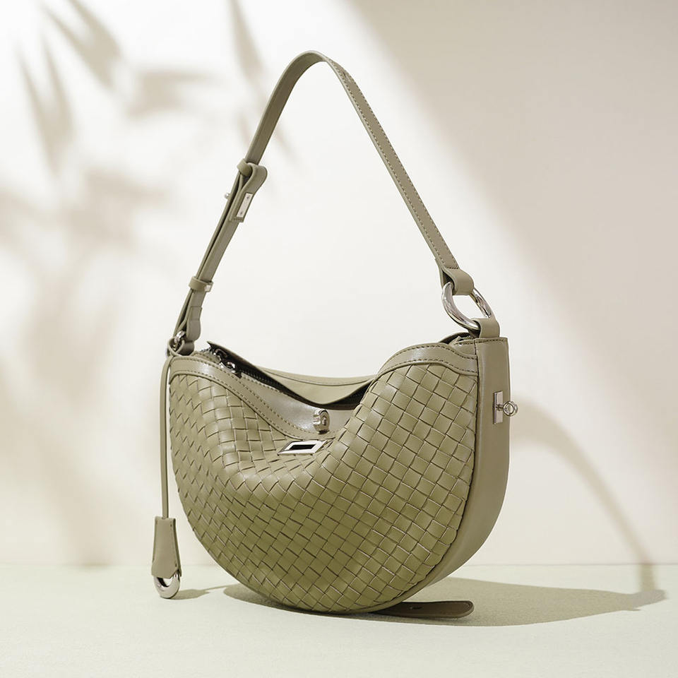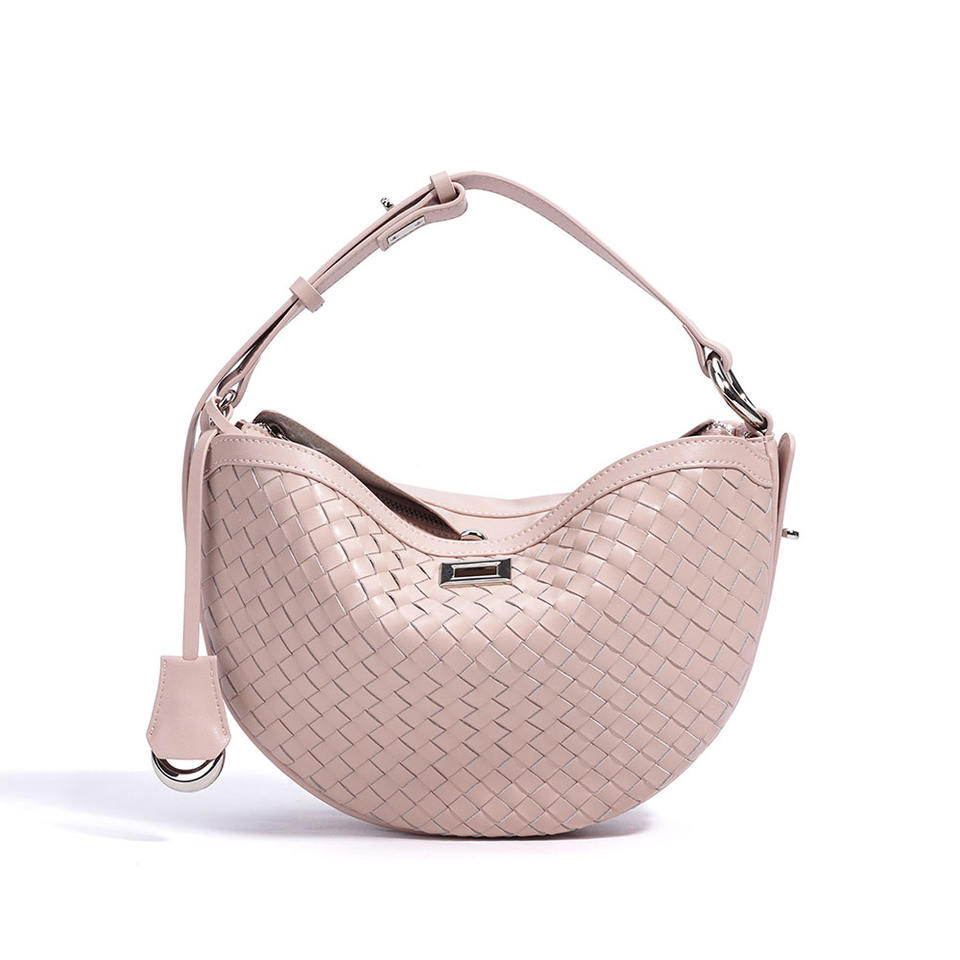 Borsa a tracolla piccola di lusso in vera pelle, tessuta a mano, a mezzaluna, minimalista, vendita all'ingrosso diretta dalla fabbrica per boutique