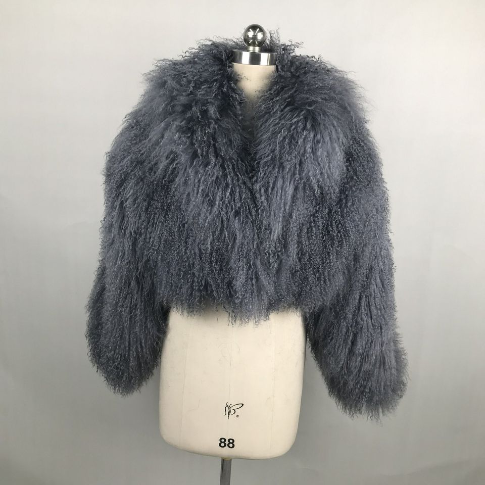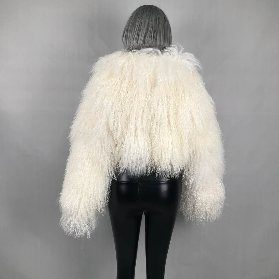 Custom Wholesale New Fashion Design Winter Jacket Green Real Mongolian Lamb Fur Coat Short Coats With Real Fur for Ladies