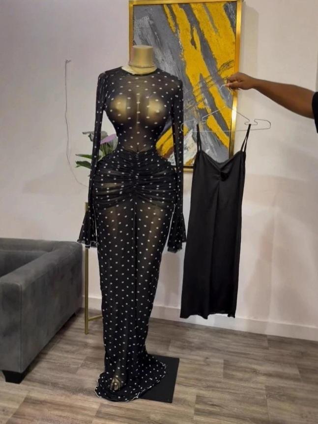 Abito Lungo da Donna Personalizzato all'Ingrosso, Collo a O, Sexy, Trasparente, Elegante per Feste e Club, Manica Lunga