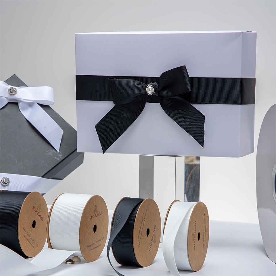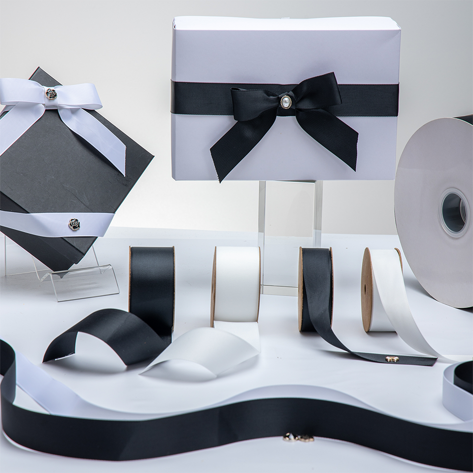 Nastro in Grosgrain di Poliestere Personalizzato all'Ingrosso, Rotolo da 10 Iarde, Nero e Bianco, 2/8 Pollici, Nastro per Fiocchi e Regali, 0,6 cm per Natale