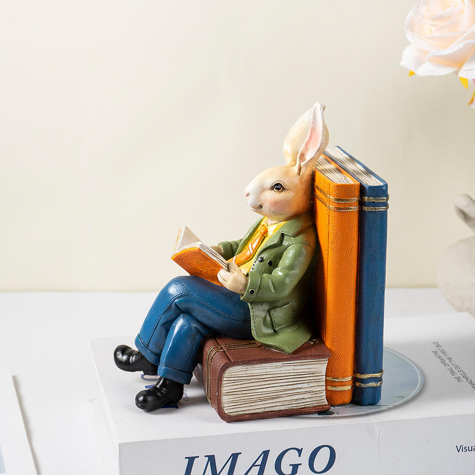 Figura del libro di lettura del coniglio statuetta del coniglietto Vintage creativo