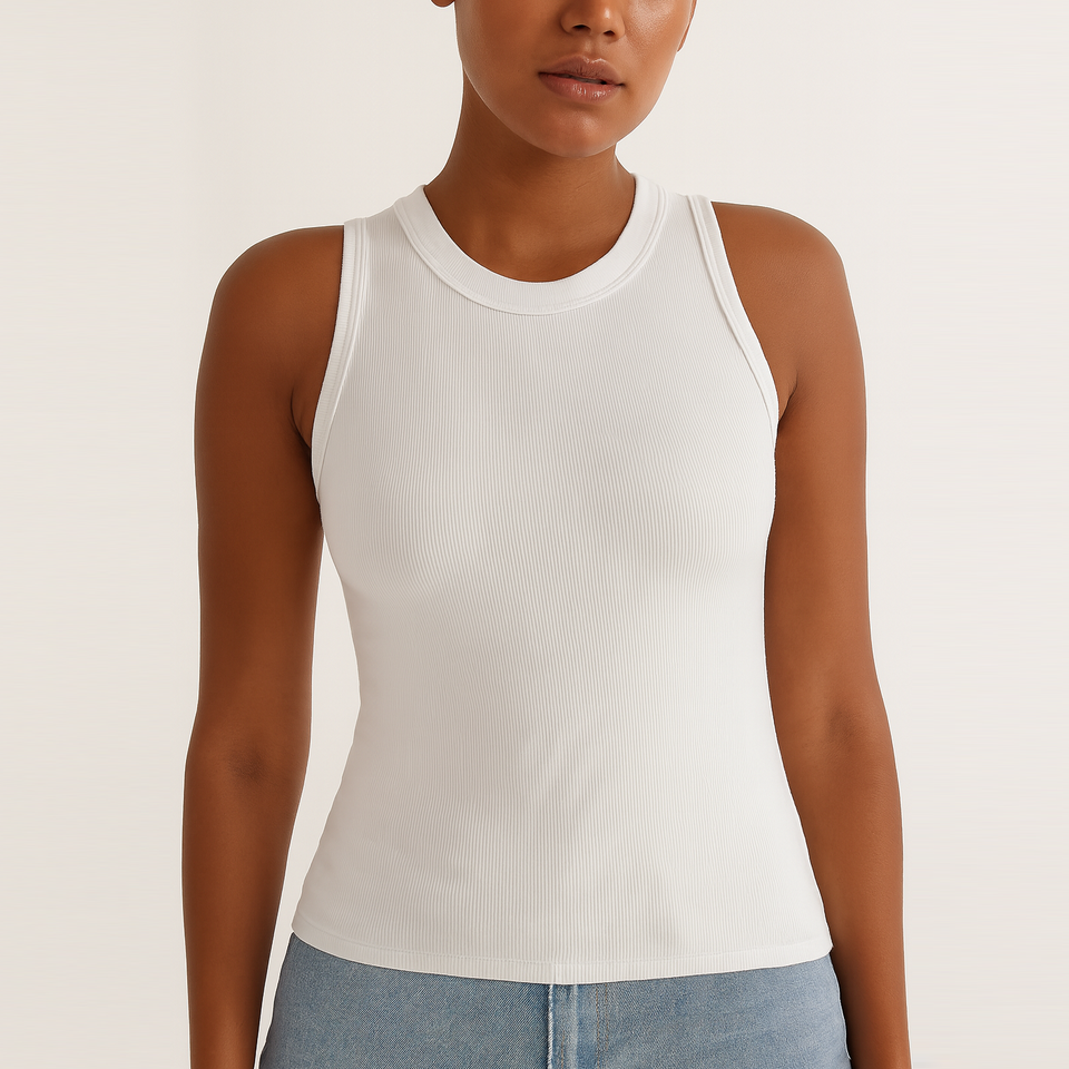 Custom Wholesale Summer O-neck White Women Ladies Cotton Ribbed tank Top