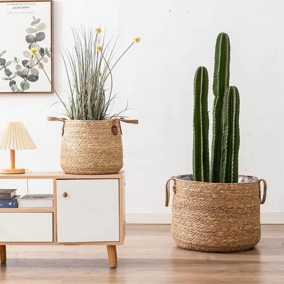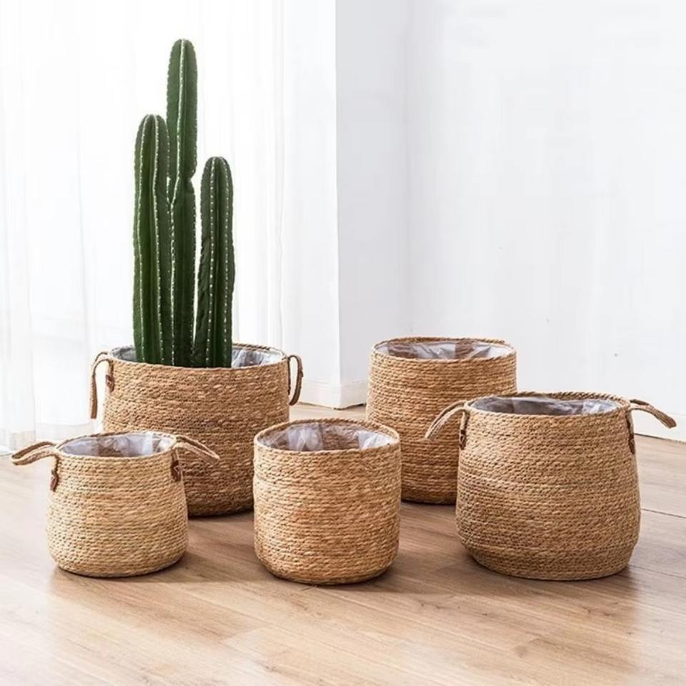Cesto Portaoggetti Rotondo in Vimini Personalizzato con Manico, Cesto Organizzatore per Decorazione Casa