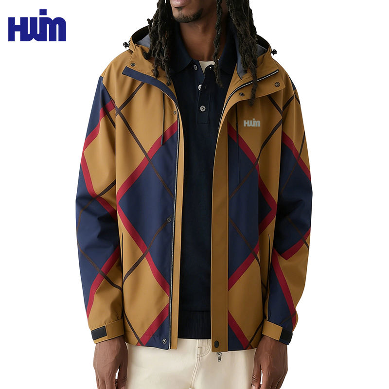 Giacca a Vento Personalizzata da Uomo con Zip, Impermeabile a Quadri per Corsa, Golf, Mountain Bike, con Cappuccio, Leggera
