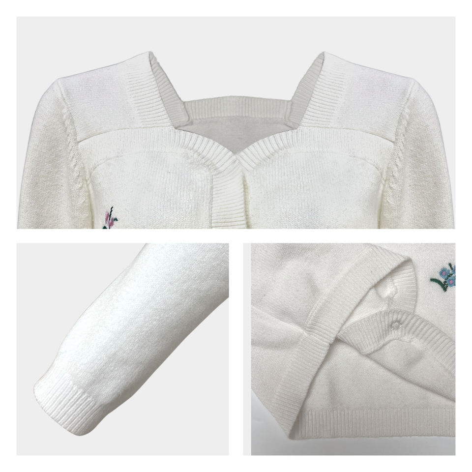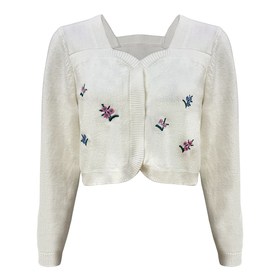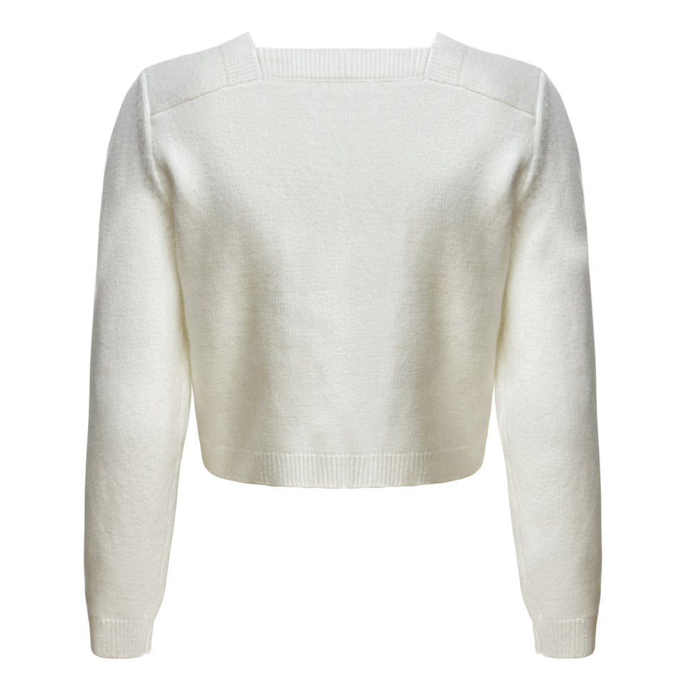 Cardigan in Cashmere da Donna Personalizzato, Nuovo Modello Invernale con Ricami in Pizzo, Elegante e Casual, Manica Lunga, Scollo a V, Bianco, con Bottoni