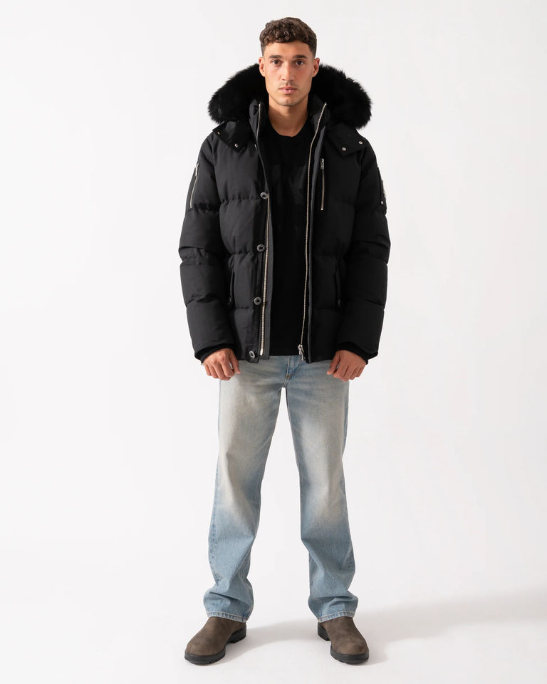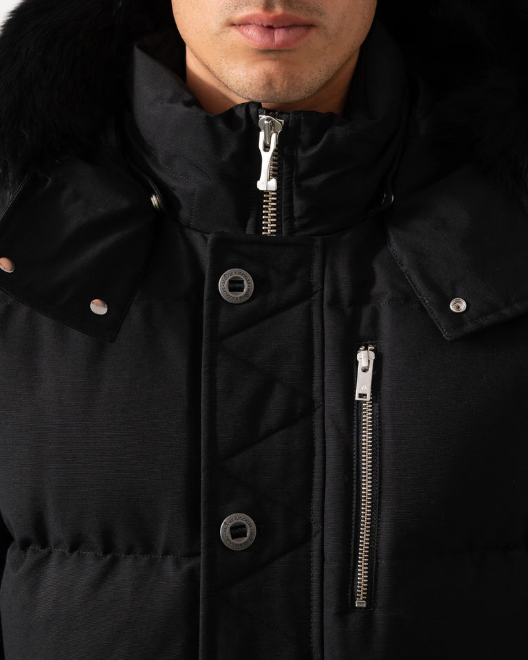 Giacca Invernale Originale 3Q Personalizzata Nera con Imbottitura in Piuma e Pelliccia, Idrorepellente, Trapuntata in Twill per Uomo
