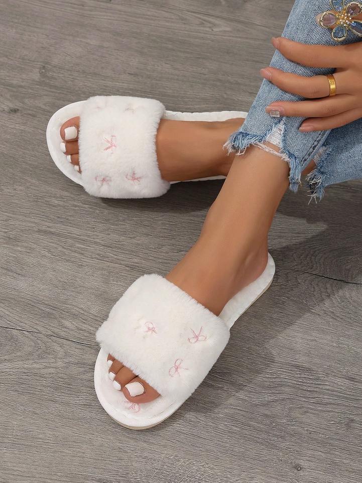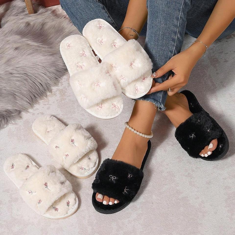 Pantofole Invernali e Autunnali Personalizzate con Punta Aperta, Ricamo in Pelliccia, Antiscivolo, Calde e Morbide per Donne