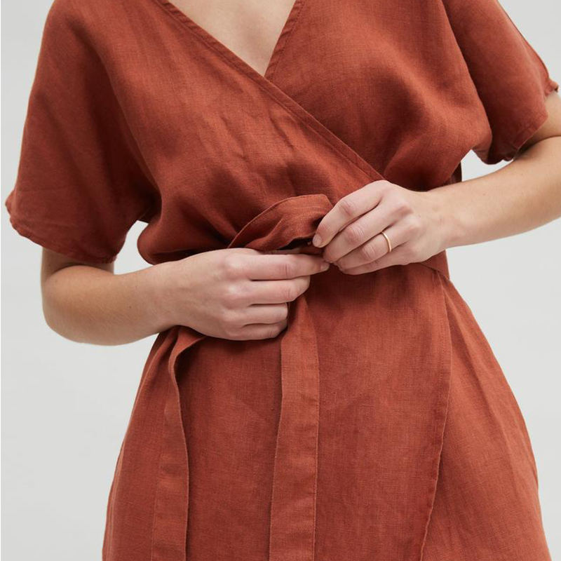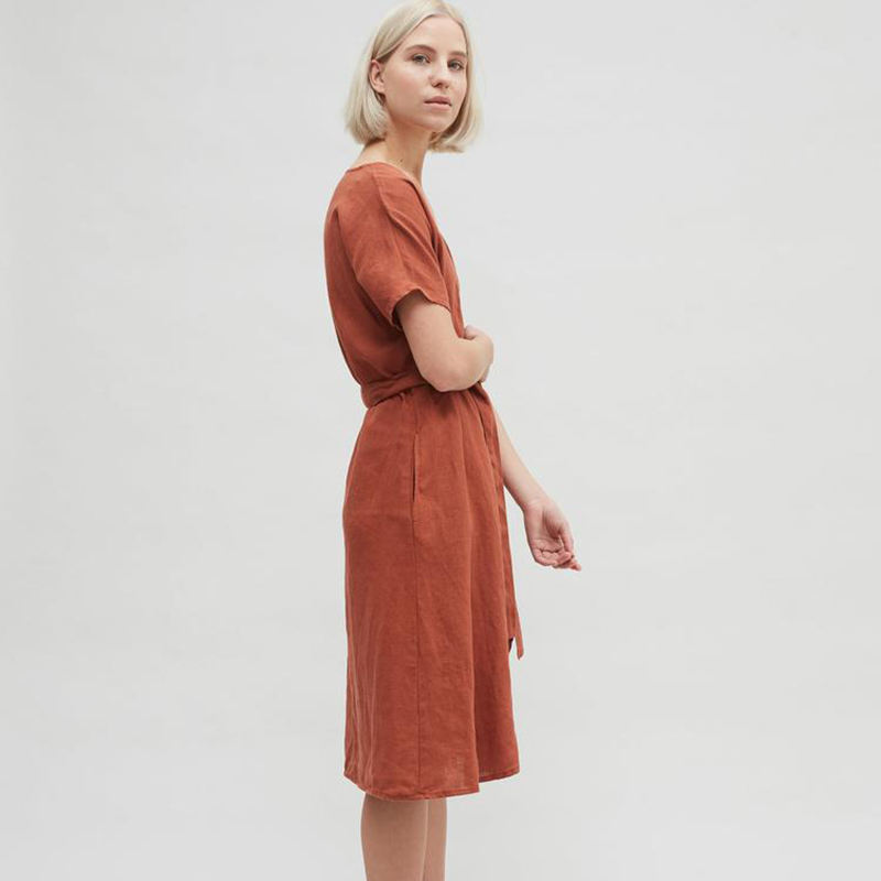Abito longuette in lino con scollo a v manica corta scollo a v manica corta con scollo a v personalizzato