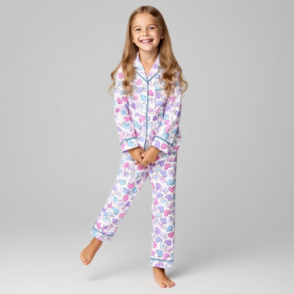 Custom Women's Bamboo Pajamas Long Sleeves New Design Valentine's Day Printing Comfortable Casual Family Matching Sleepwear