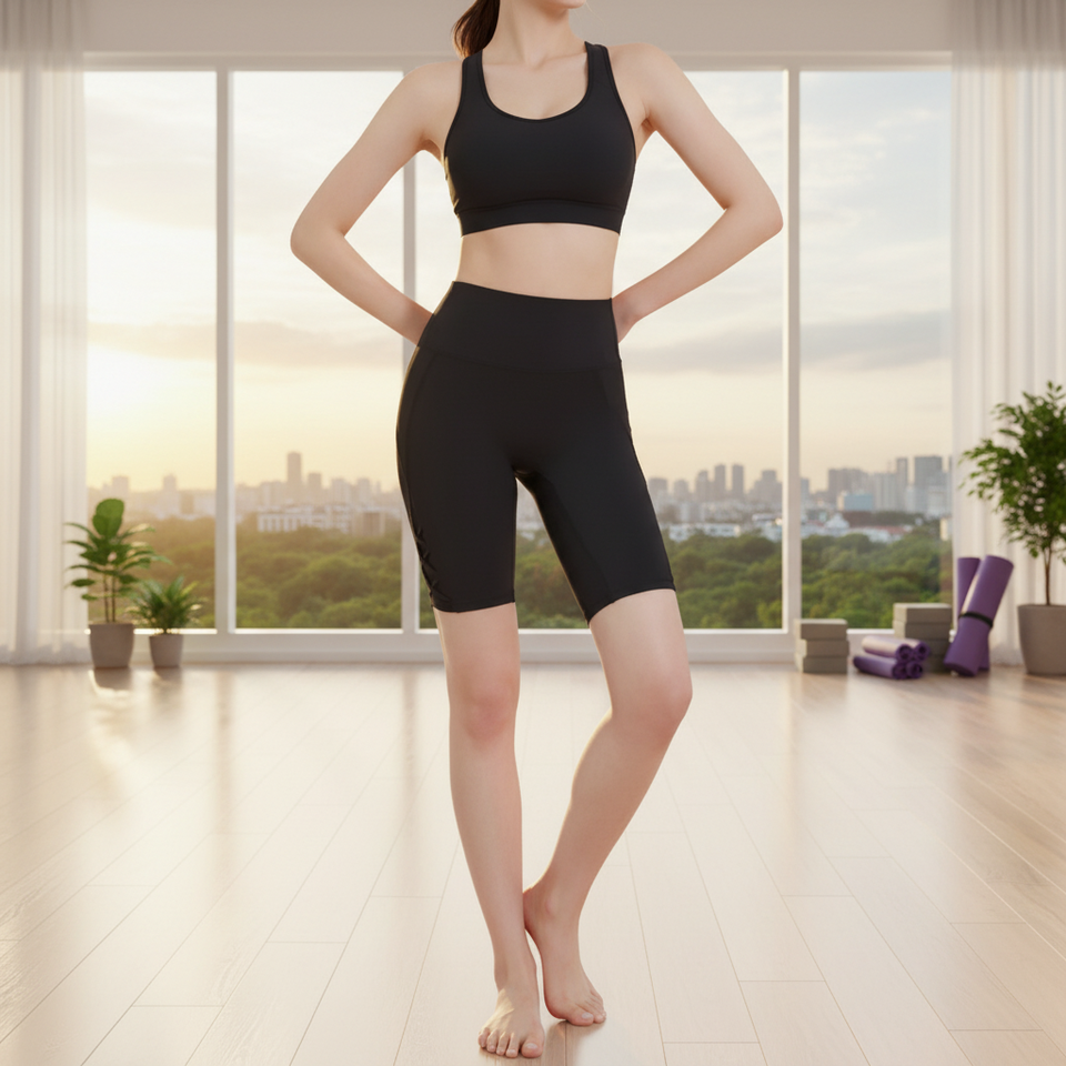 Pantaloni da yoga di media lunghezza ad alta elasticità personalizzati da donna D4