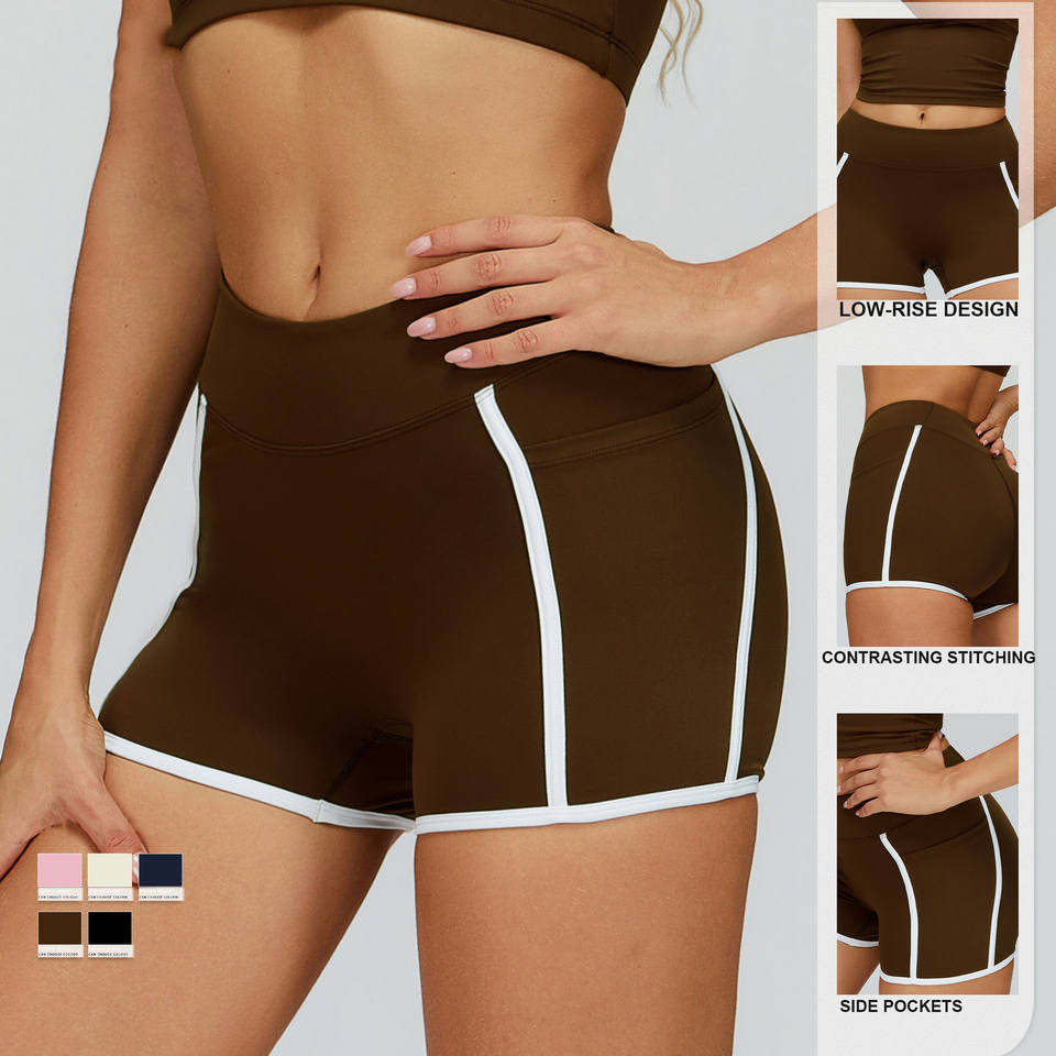 Custom Women's High Waist Yoga Shorts Breathable Solid Quick Dry Elastic Waist High Lifting Anti-Glare Body Shaping Leggings