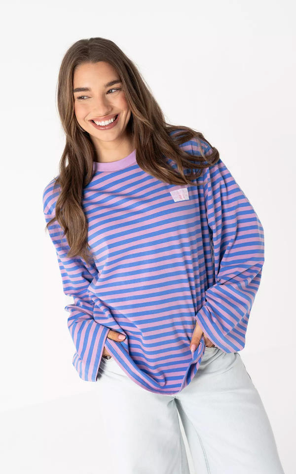 Camicia Oversize a Righe in Cotone per Donna - Top Blu Lilla a Maniche Lunghe Vestibilità Comoda, OEM/ODM da Fabbrica di Abbigliamento Cinese