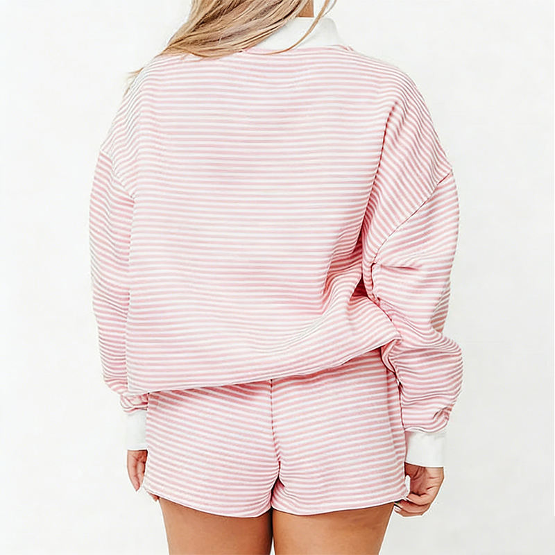 Felpa Oversize da Donna Personalizzata a Righe Rosa e Bianche con Collo Alto, Traspirante, Casual, in Cotone con Logo Ricamato