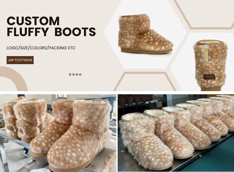 Stivali Invernali da Donna Personalizzati con Piattaforma, Pelliccia Sintetica Morbida, Stampa Renna Marrone, Produttori
