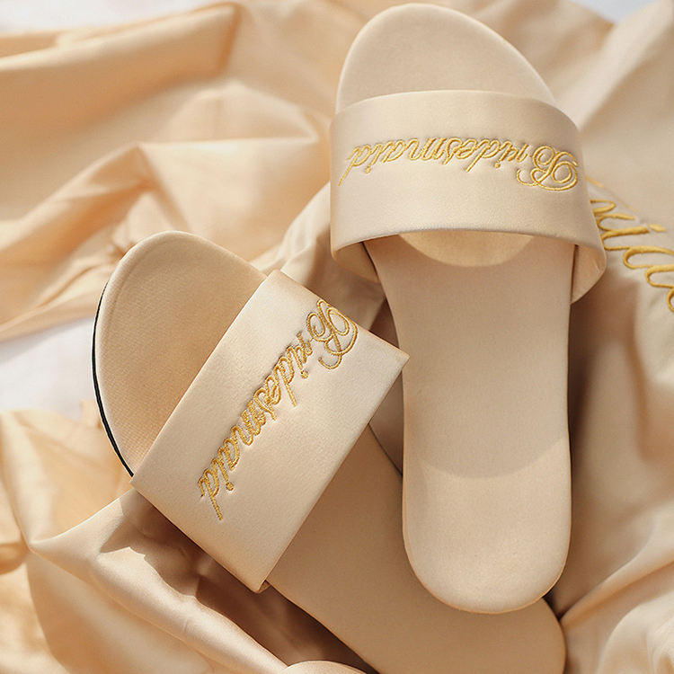 one pair in one poly bag 12 pairs per cartons 62cm*32cm*31cm for Custom Women's Summer Embroidery Flat Sandals Casual Bridal Wedding Satin Bride Slippers