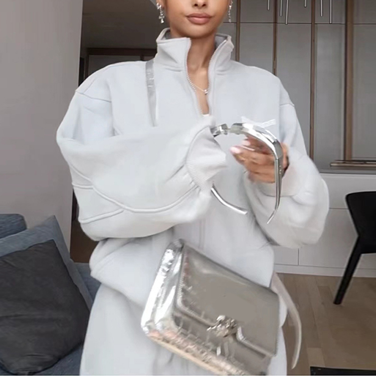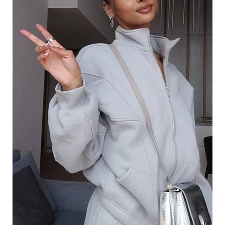 Tuta Sportiva da Donna Personalizzata, Set Due Pezzi con Felpa con Zip e Pantaloni Jogger, Abbigliamento Casual Sportivo in Pile, Set Oversize da Donna