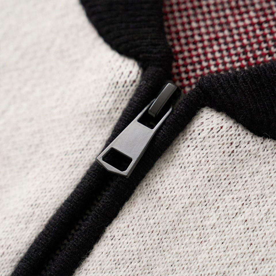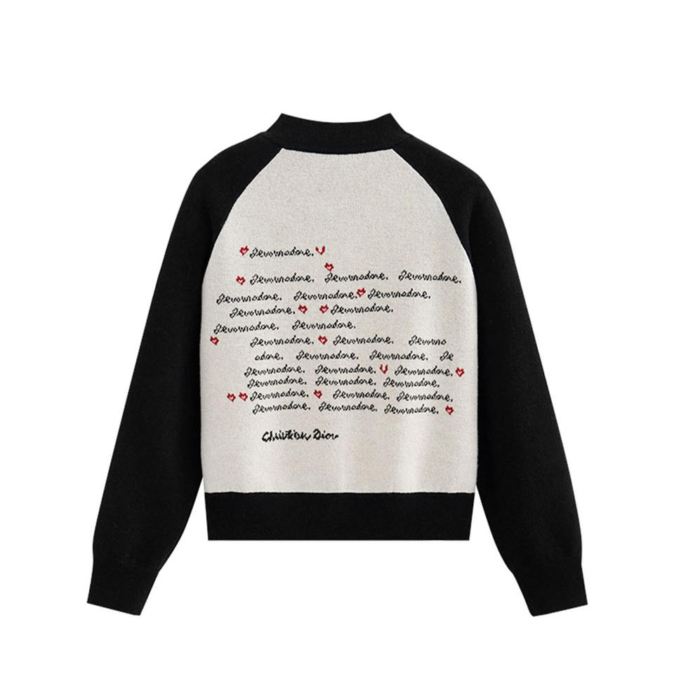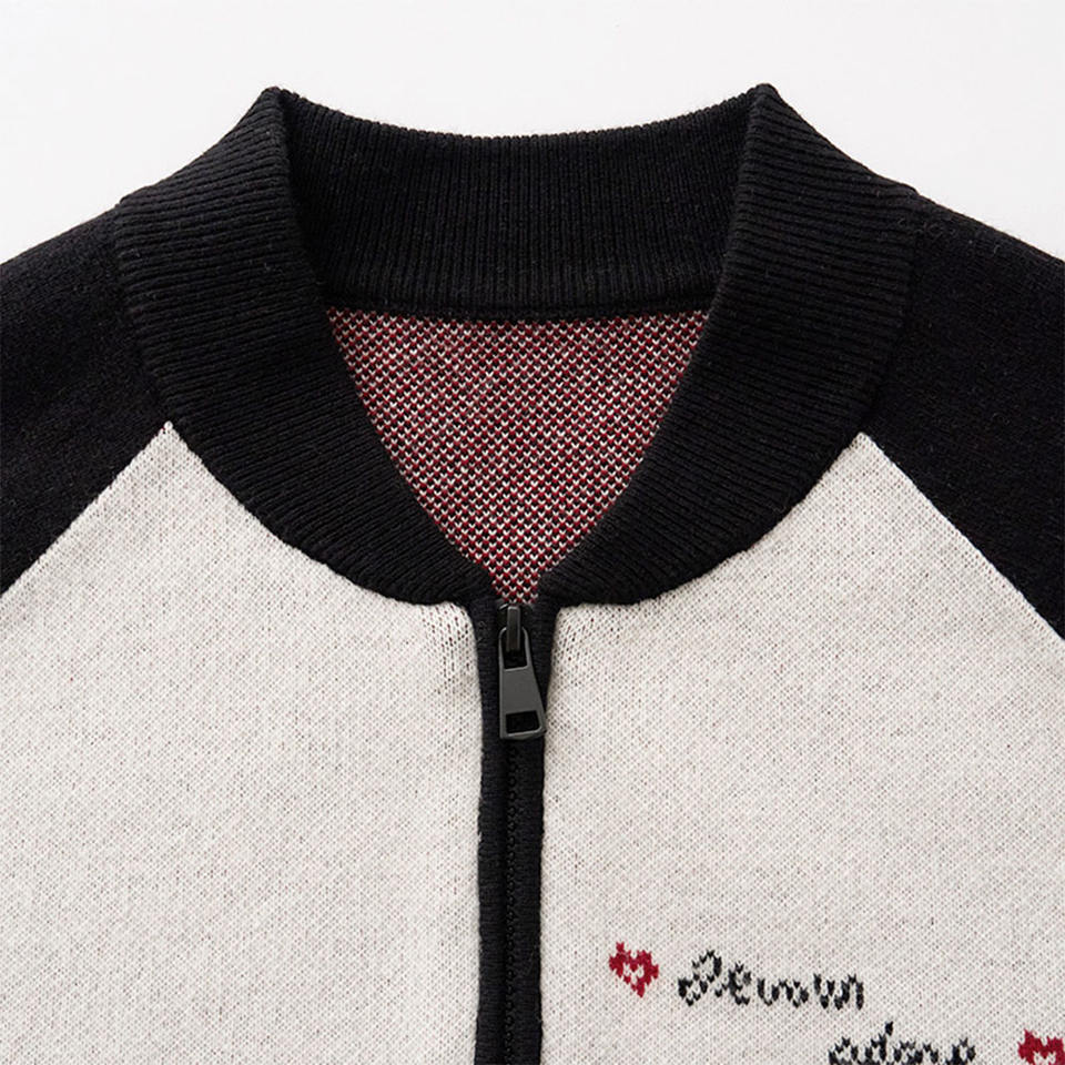 Custom Women's Zip-Up Pure Wool Knit Jackets Cardigan French Style with Stand Collar Color Block Casual Winter Warm Tops