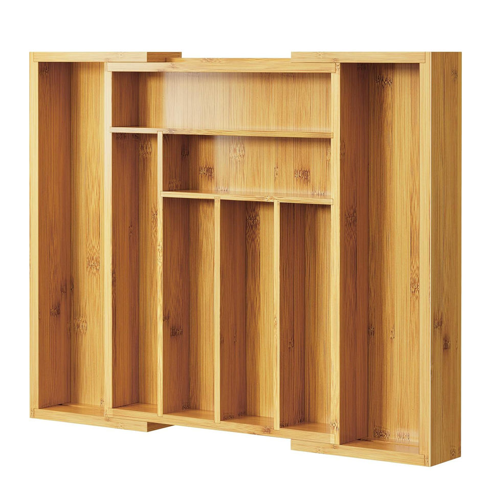 Organizzatore Espandibile in Legno di Bambù per Cassetti da Cucina, Vassoio Porta Utensili e Posate Personalizzato