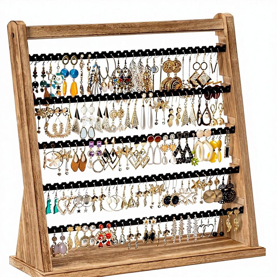 Custom Wooden Jewelry Display Stand for Vendors Earring Card Holder Rack, Necklace Stand Display Retail Boutique Fixture