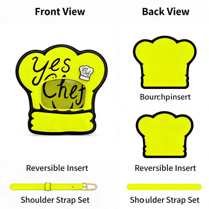 Borsa a tracolla personalizzata gialla per chef con finestra trasparente per spille e accessori, per amanti della ristorazione e dell'espressione culinaria