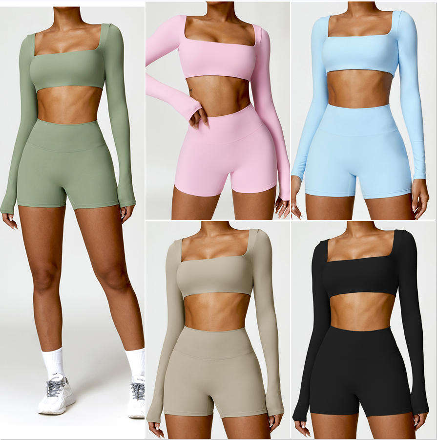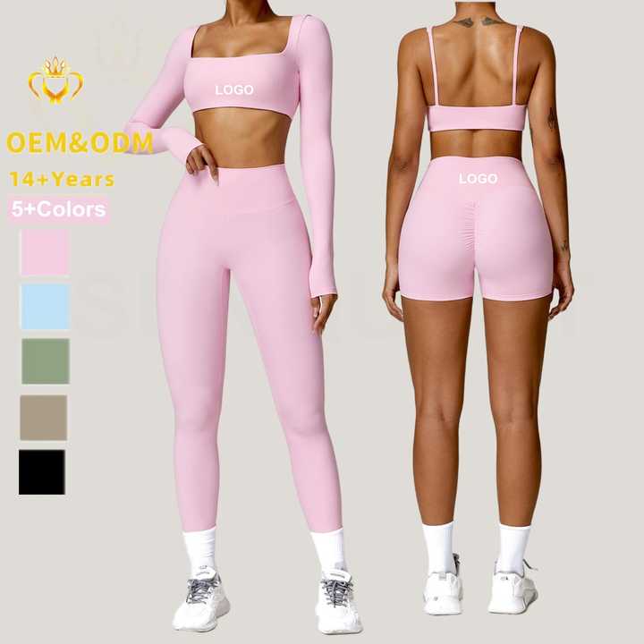 Set Yoga Personalizzato Completo Sportivo Leggings Arricciati e Reggiseno Abbigliamento Attivo per Yoga Allenamento Sportivo Set Fitness da Palestra per Donne SQ8518