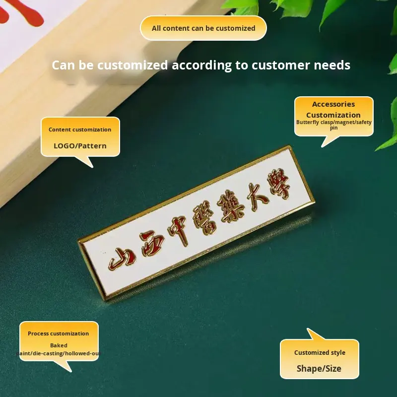 Distintivo Personalizzato in Lega di Zinco e Acciaio Inossidabile, Rettangolare, Fatto a Mano, con Finitura Smaltata, per Scuola/Club/Team, con Fibbia a Farfalla e Nome