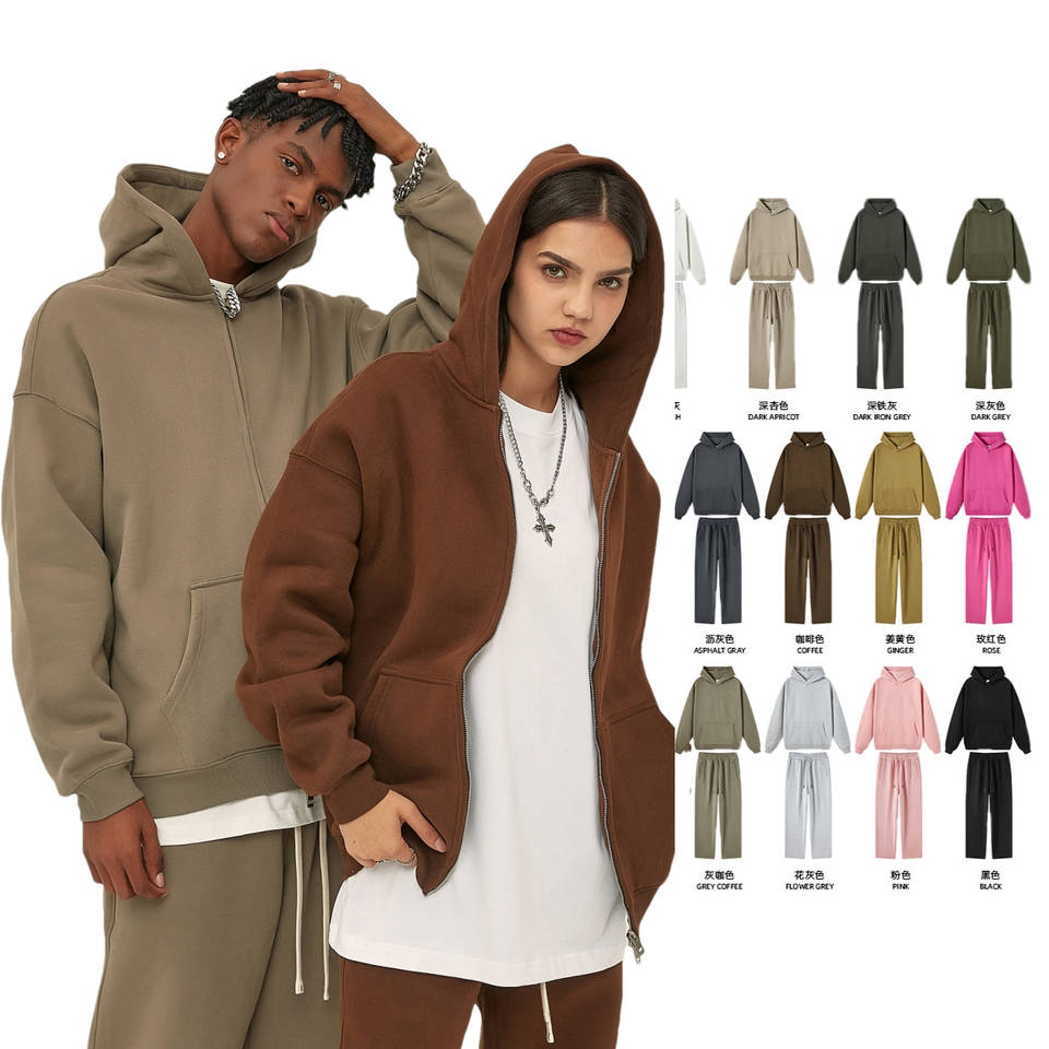 Set di felpe con cappuccio con cerniera personalizzata da uomo donna Unisex a gamba larga con Logo in rilievo di alta qualità in bianco felpa e felpe con cappuccio