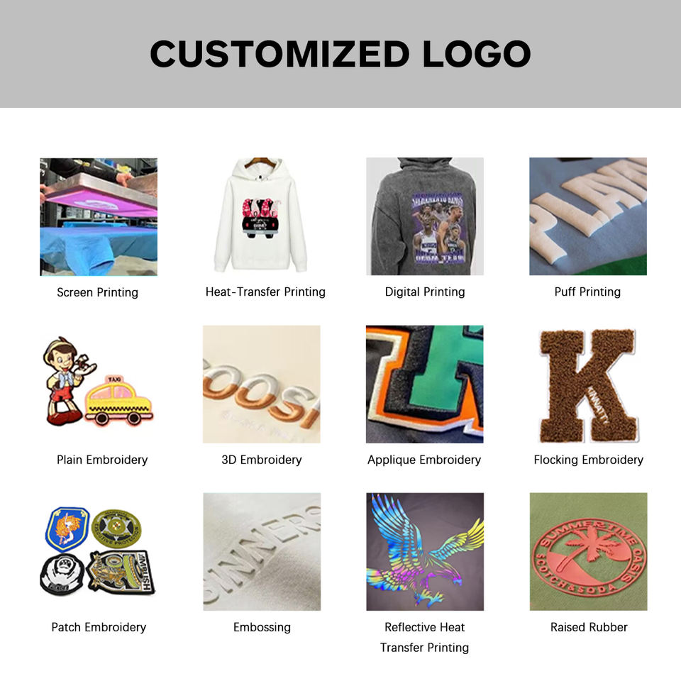 Posizione del Logo:Anteriore, Indietro, Manicotto di sinistra, Manicotto di destra, Orlo inferiore, Collo posteriore, Vita, Gamba sinistra, Gamba destra