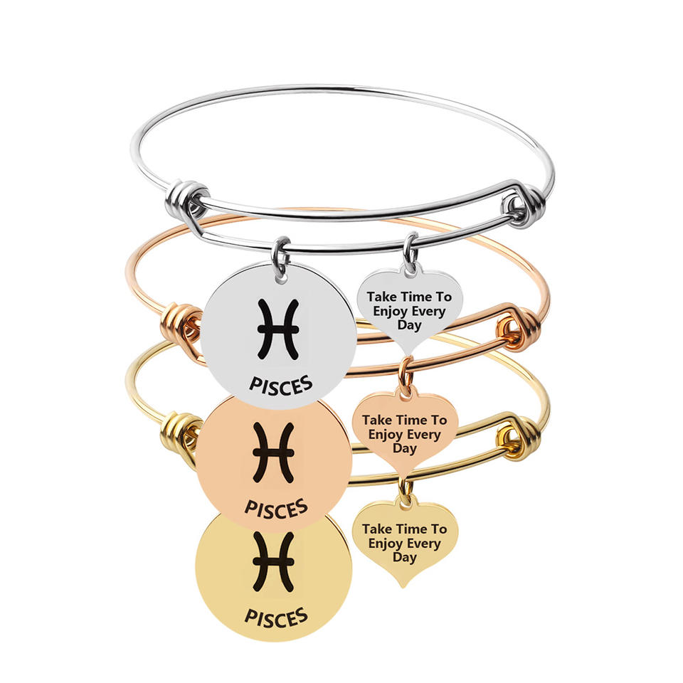Custom Segno Zodiacale Bracciale In Acciaio Inossidabile Registrabile Del Braccialetto Del Braccialetto