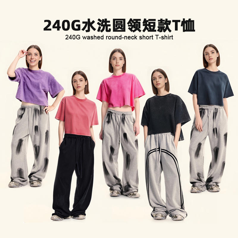 T-shirt Crop Top in Cotone con Logo Personalizzato, Effetto Acid Wash Vintage, Sexy e Trendy per Ragazze e Donne, Streetwear