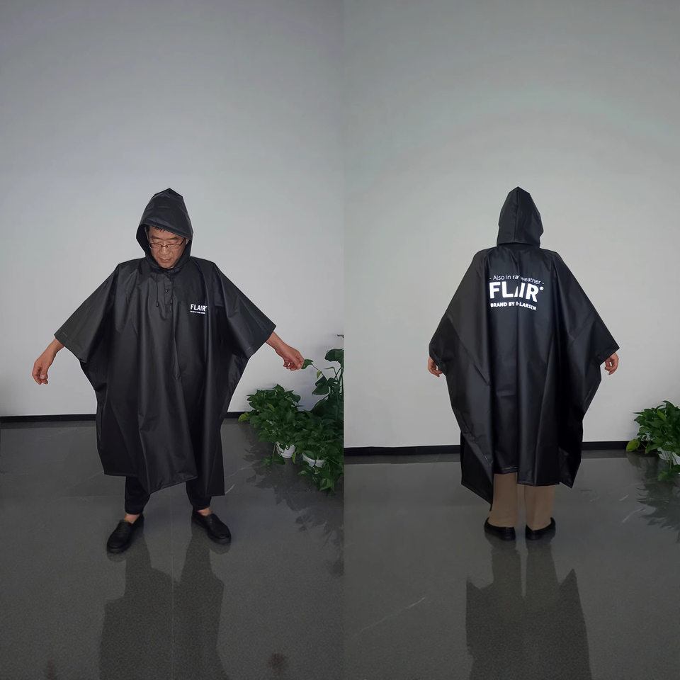 Impermeabile Quadrato per Adulti con Logo Personalizzato, 100% Impermeabile, Poncho Antipioggia Nero Riutilizzabile Biodegradabile in Eva con Cappuccio Traspirante