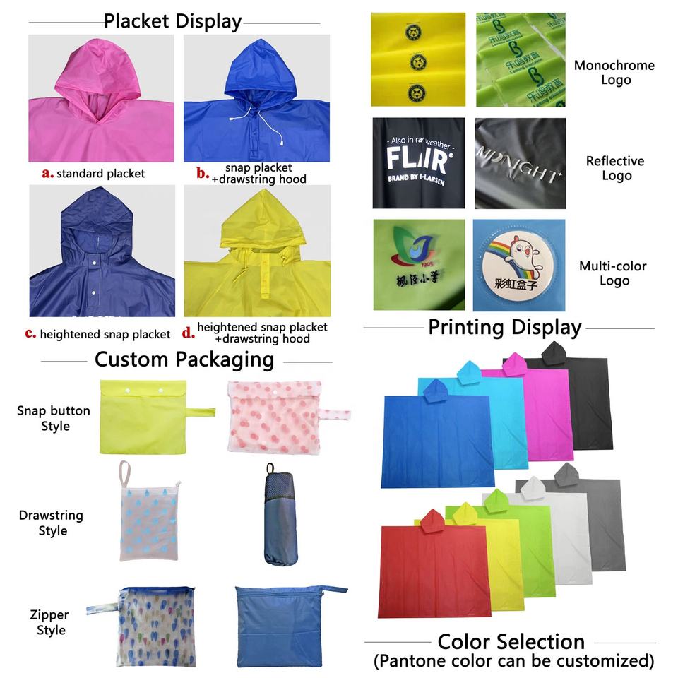 Nome: 100% impermeabile nero riutilizzabile biodegradabile eva impermeabile logo personalizzato pioggia poncho