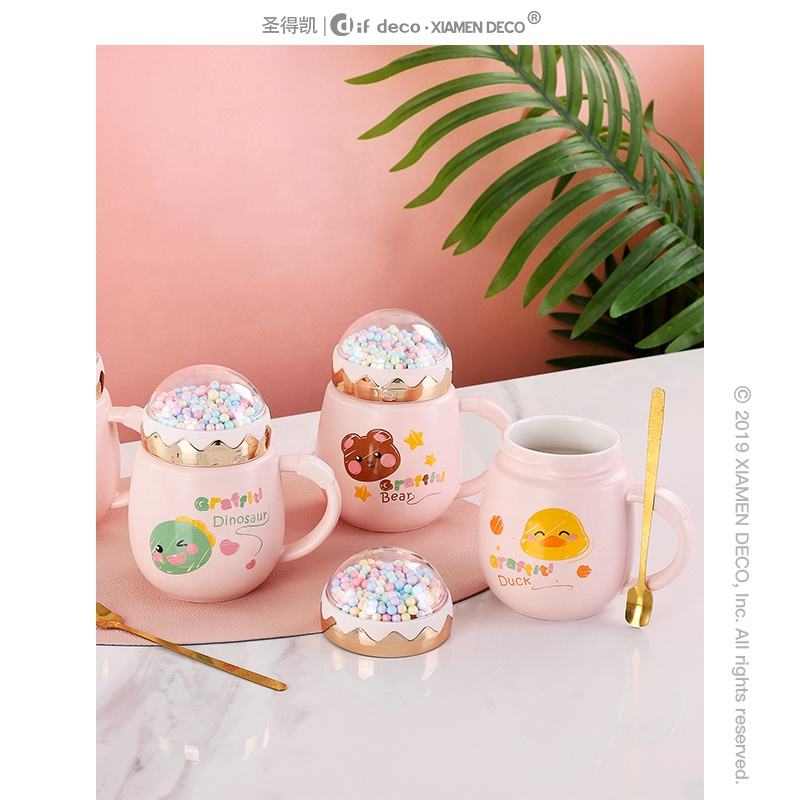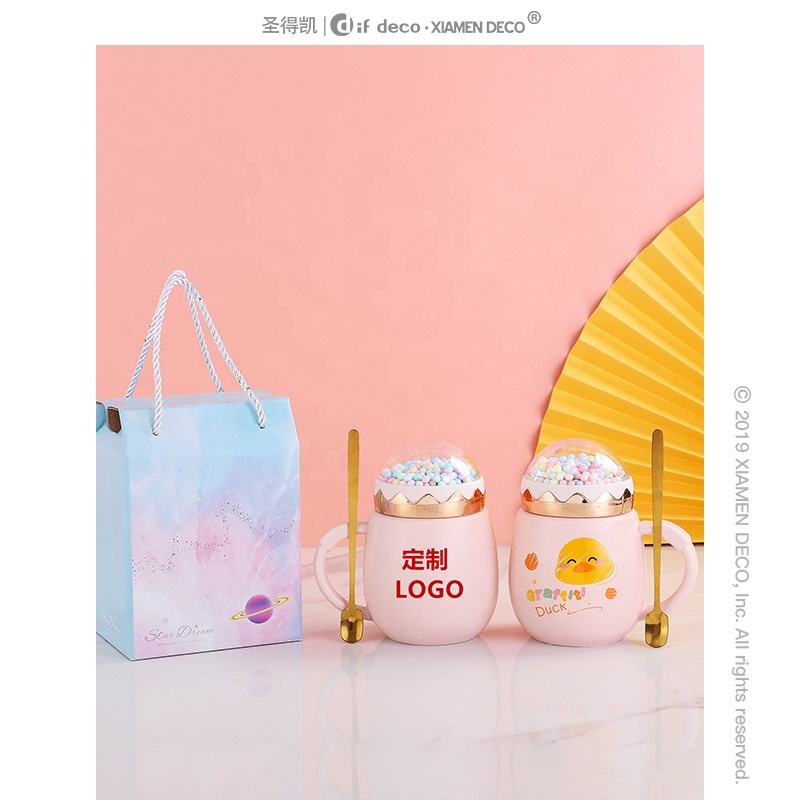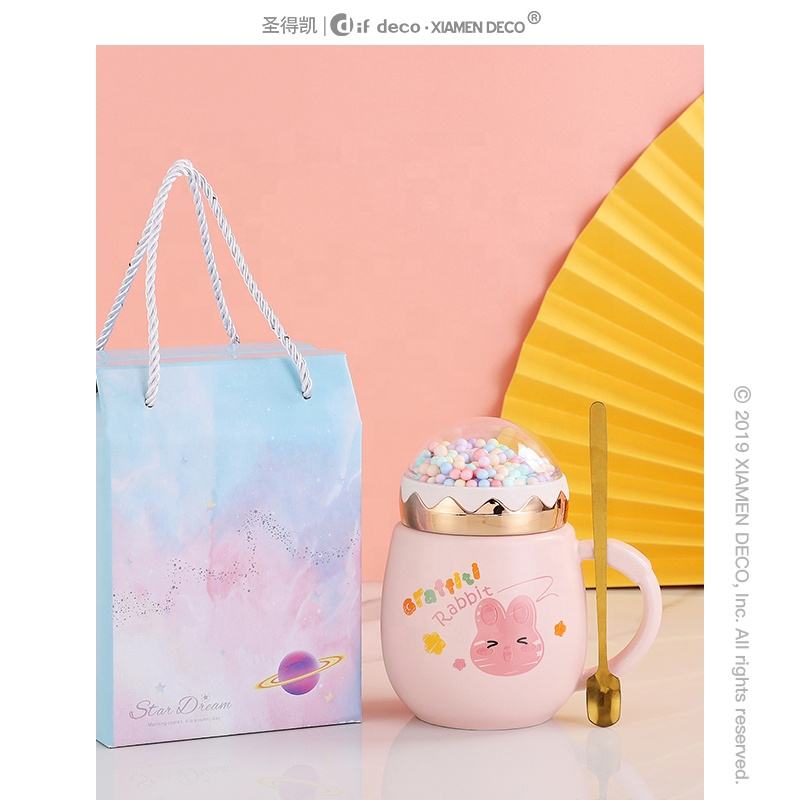 Tazza in ceramica con logo personalizzato con coperchio e cucchiaio tazza da caffè cuore ragazza coniglio cartone animato