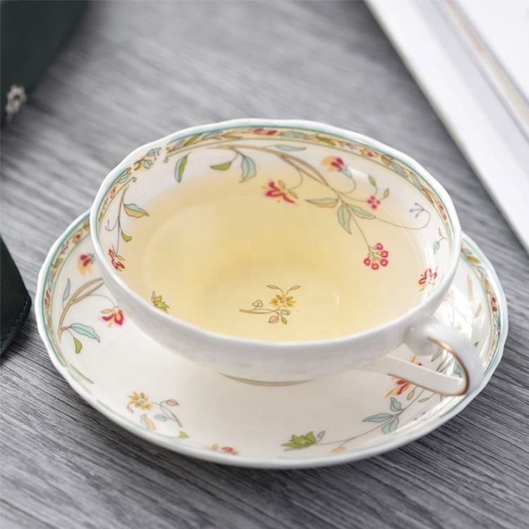 Set di Tazza e Piattino in Ceramica con Logo Personalizzato, Elegante Servizio da Caffè con Motivo a Farfalla