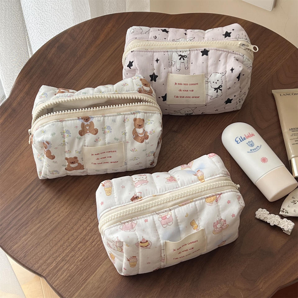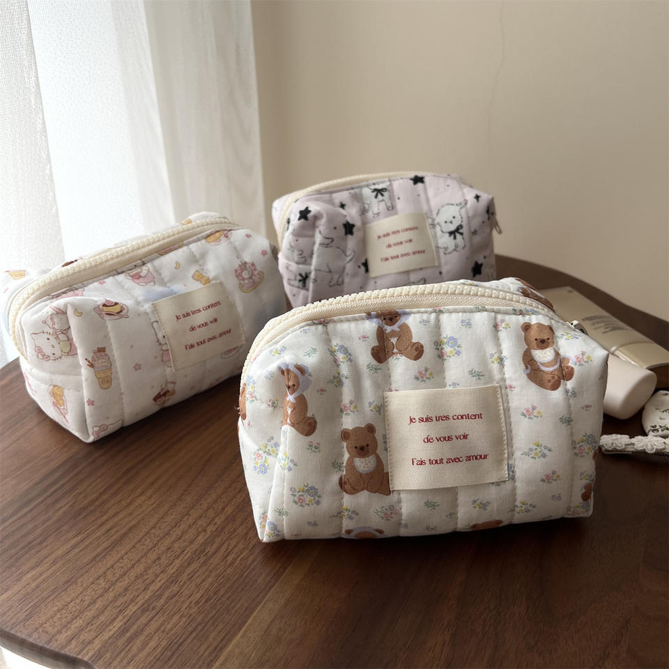 Borsa per Trucco e Telefono Cellulare con Logo Personalizzato, Design Animale Cartoonesco, Righe Verticali Trapuntate, Chiusura a Zip