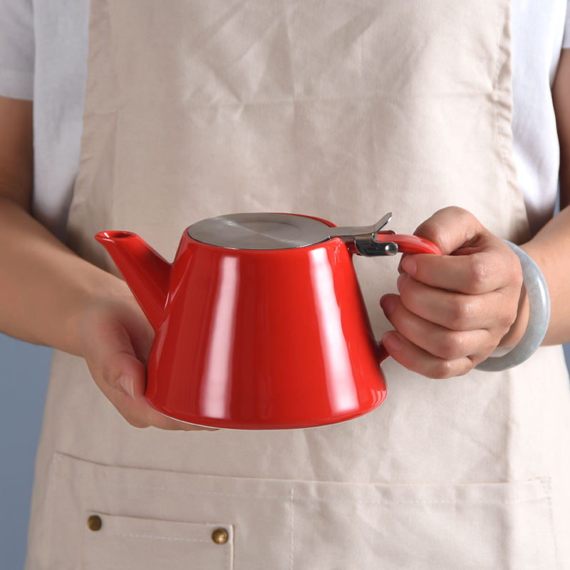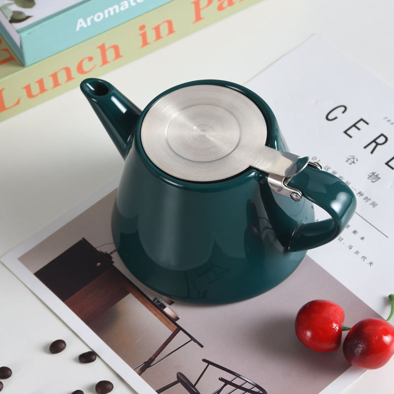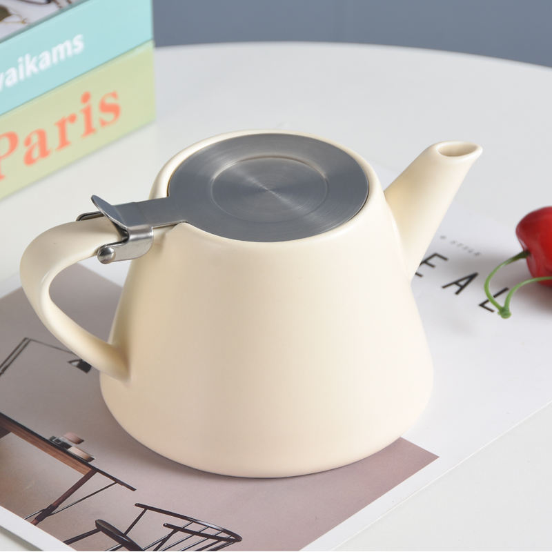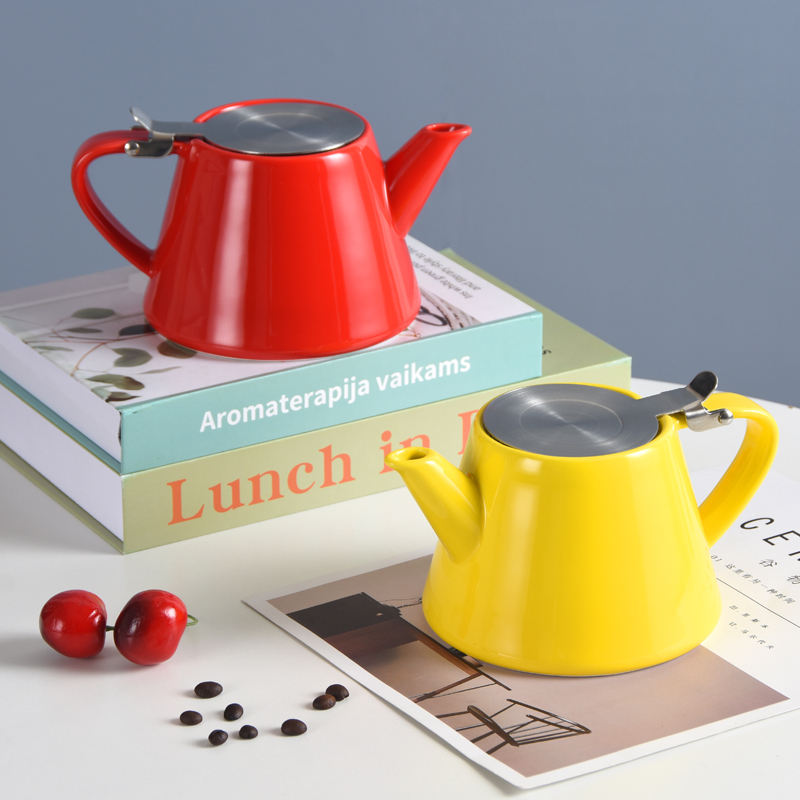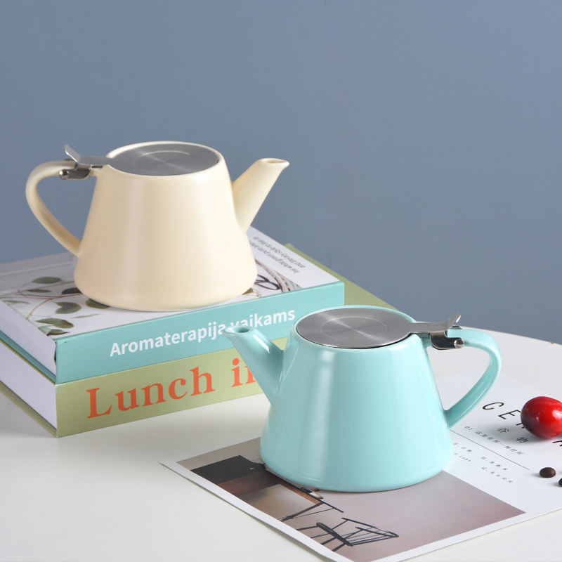Logo personalizzato design macarons colori teiera in ceramica con filtro infusore in acciaio inossidabile
