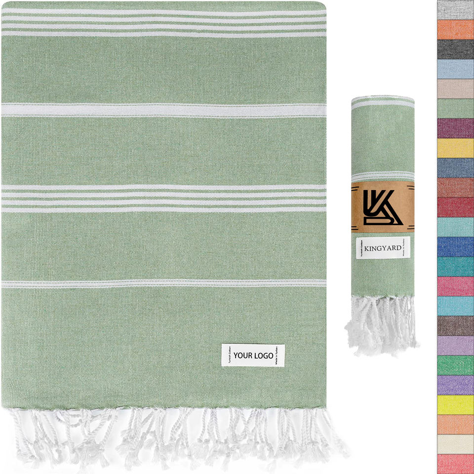 Telo Mare Turco Oversize in Cotone con Frange, Design con Logo Personalizzato, Super Assorbente, Leggero e Anti-Sabbia