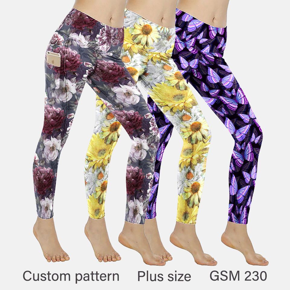 Leggings da Yoga con Stampa Floreale e Logo Personalizzato, Vita Alta, per Palestra e Allenamento, Vendita all'Ingrosso