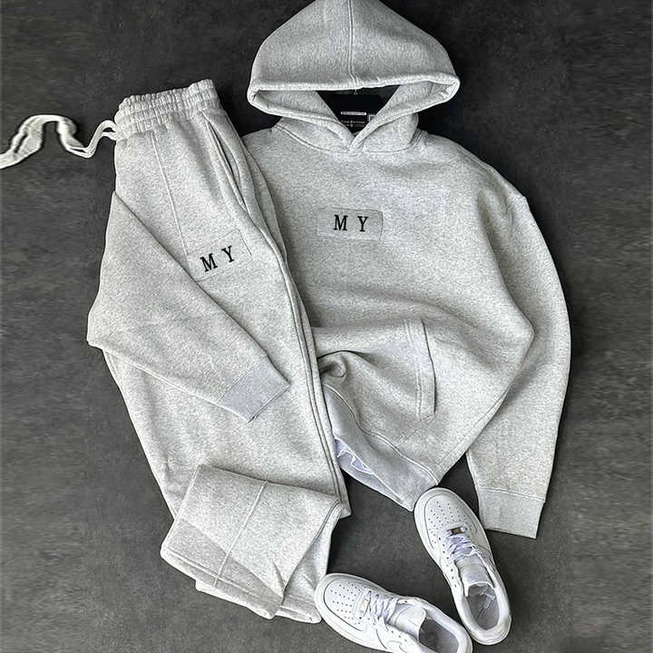 Tuta in Pile 100% Cotone con Logo Personalizzato, Felpa con Zip e Pantaloni da Jogging per Uomo, Set Sportivo Streetwear dei Produttori