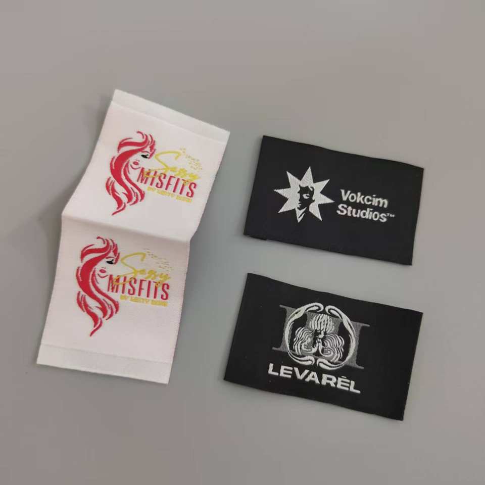 Custom logo High Density Damask Woven Labels for Clothing Sew on End Fold Polyester Garment Tags with Personalized Brand Marks