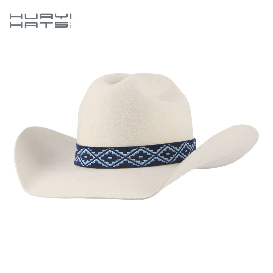 Logo personalizzato di alta qualità cappello Fedora occidentale a tesa larga bianco Unisex 100% in lana australiana cappelli da Cowboy per uomo donna