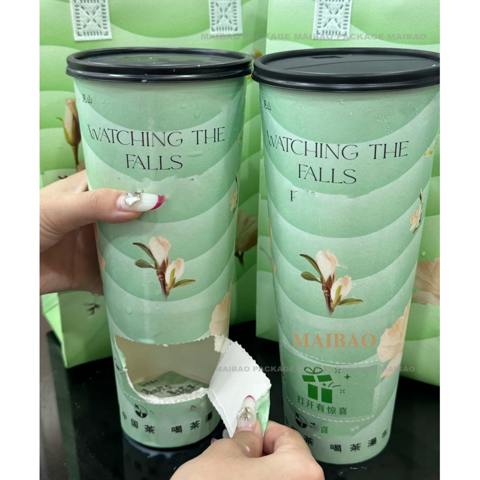 Bicchiere di Carta Sorpresa Personalizzabile con Logo, 24 oz, con Scomparto Regalo sul Fondo per Caffè, Bubble Tea, Frutta e Latte