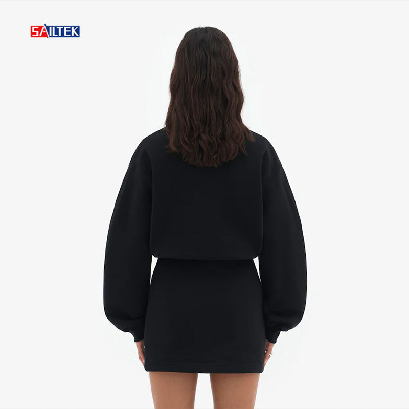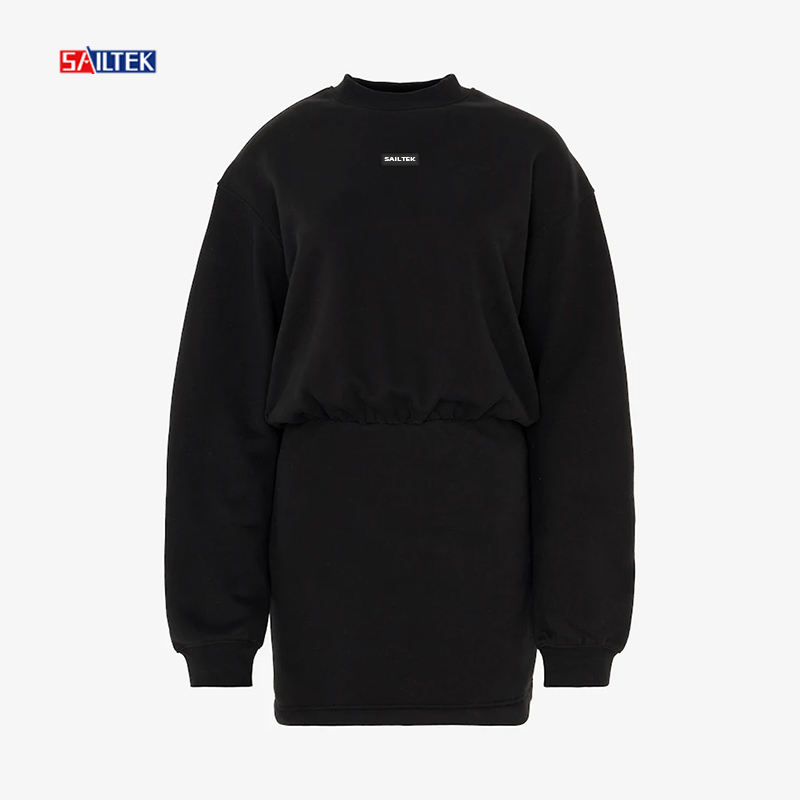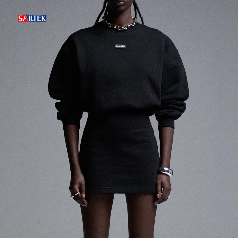Abito da donna con cappuccio con logo personalizzato da donna nero a manica lunga 2025 primavera all'ingrosso abbigliamento donna abito felpa