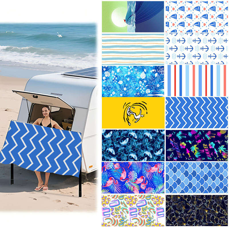 Asciugamano da Spiaggia Multifunzione Personalizzabile con Logo, Antivento, in Camoscio Magnetico, Senza Sabbia